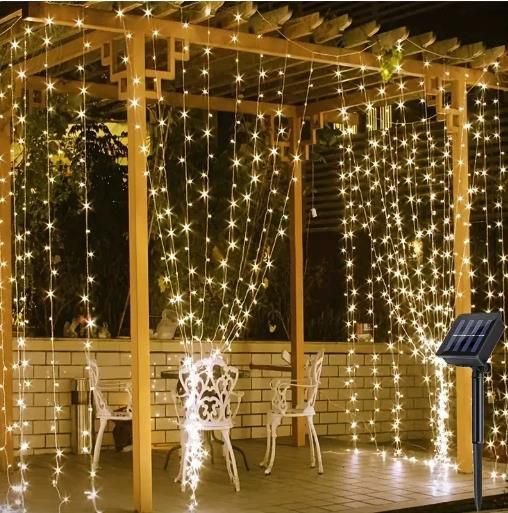 3*3m Solar LED Curtain Fairy Christmas Lights