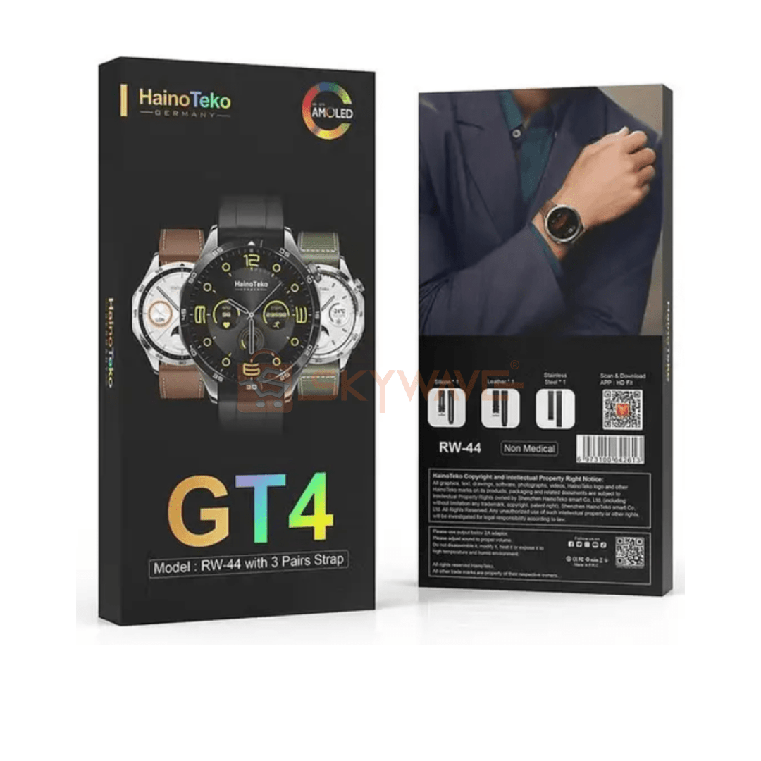 Compact, stylish, and functional, the HainoTeko GT4 Amoled RW-44 With 3 Pairs Straps Watch is the perfect companion for modern living. It combines connectivity, personalization, health tracking, and convenience in one sleek device, making it ideal for tech-savvy users who want the best of all worlds on their wrist.