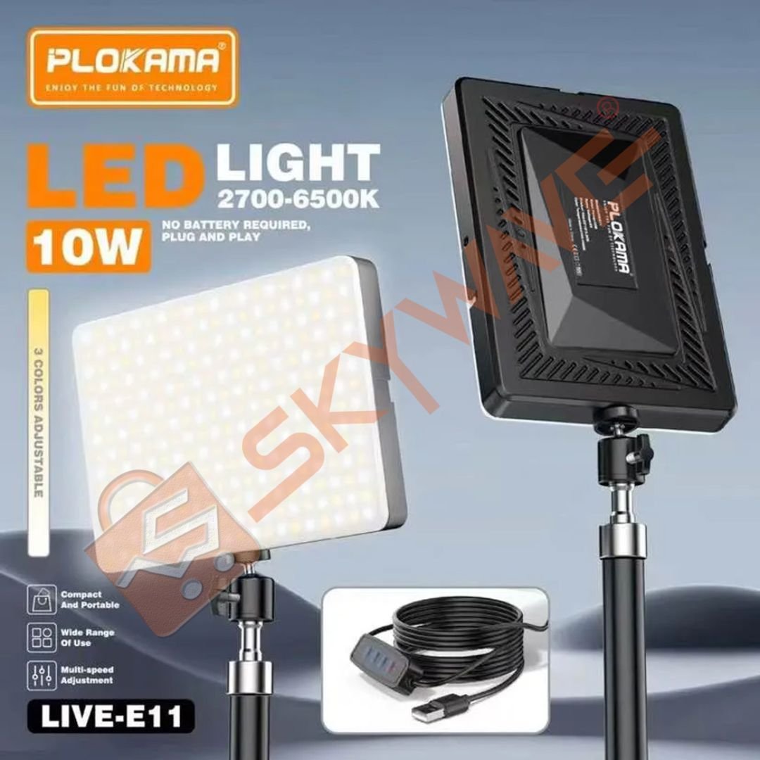 Experience reliable, modern lighting with the Plokama LIVE-E11 LED Light, a compact yet powerful 10W panel designed for photography, live streaming, video calls, online teaching, and content creation. Built by PLOKAMA under the inspiring tagline ENJOY THE FUN OF TECHNOLOGY, this LED light blends performance, simplicity, and stability to help you achieve professional results with ease.