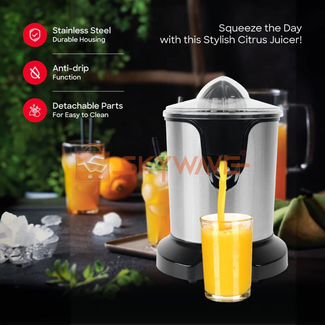 The Sanford 2-in-1 Citrus Juicer SF5554CJ is a compact, versatile, and high-performance appliance ideal for personal use or small servings. Featuring a 0.3L capacity, 170W powerful motor, two cone sizes, anti-drip spout, easy juice extraction, adjustable pulp filter, stainless steel housing, anti-slip base, full copper motor, and simple cleaning, the Sanford 2-in-1 Citrus Juicer SF5554CJ delivers fresh, healthy, and delicious juice effortlessly. Its combination of efficiency, safety, and modern design makes it an essential addition to any kitchen, ensuring you enjoy fresh juice with convenience and style every day.