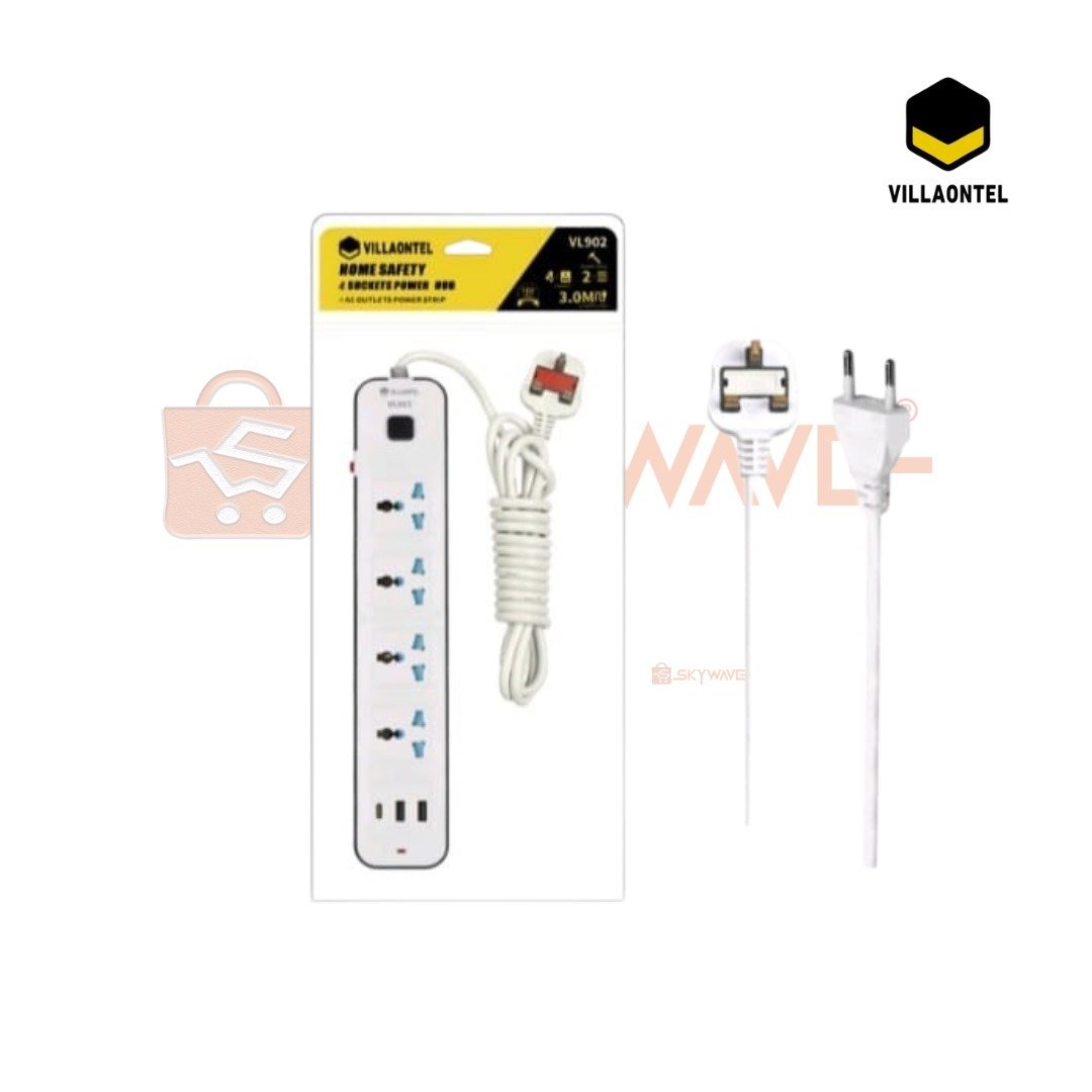 The VL-902 comes with a thick, durable 3-meter power cord that offers extended reach from wall sockets, making it ideal for rooms with limited outlet access or for powering devices placed farther from the wall. - Four Universal AC Sockets